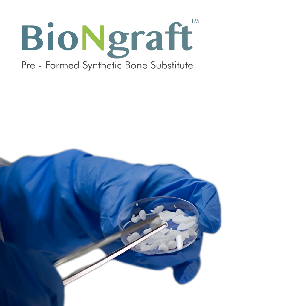 Η BIONGRAFT είναι ένα πορώδες υποκατάστατο οστικού μοσχεύματος με βάση το β-Τριφωσφορικό Ασβέστιο (β-TCP), το οποίο περιλαμβάνει νανοσωματίδια ZrO₂ για αντιβακτηριακή δράση.