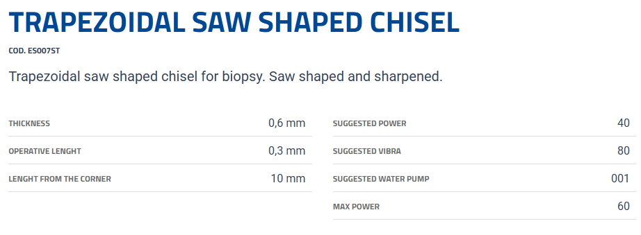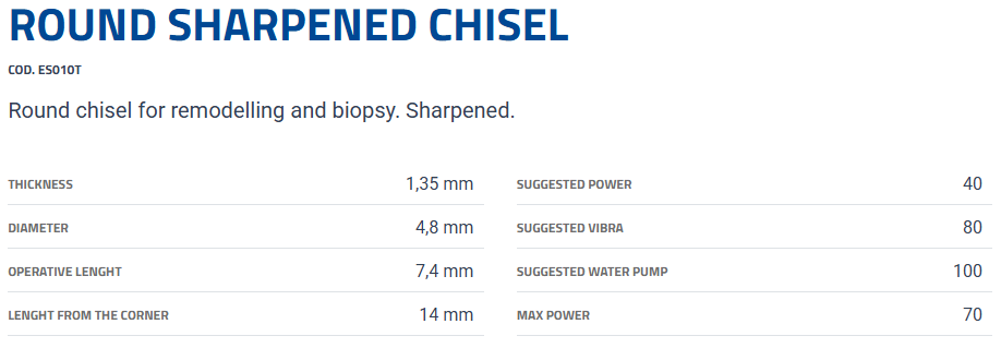 • Άκρες για ξύση: Ακονισμένες και ελεγχόμενες, ιδανικές για τη συλλογή οστικών τεμαχίων από διάφορες ανατομικές περιοχές, όπως η φατνιακή άκρη.