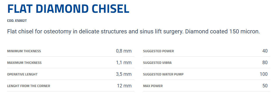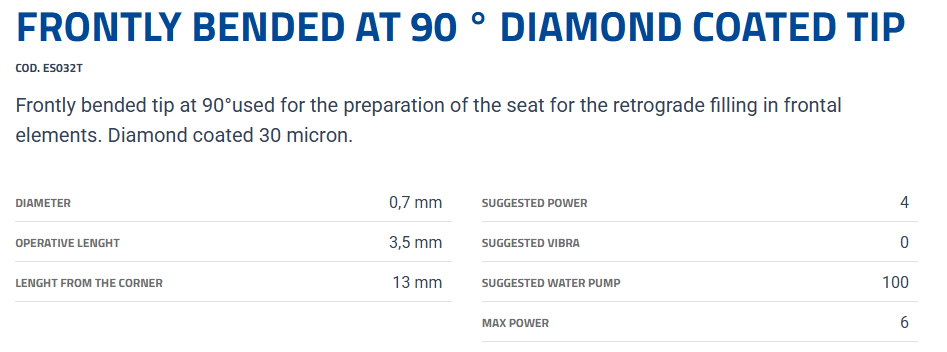 Πλήρες κιτ αφιερωμένο στην προετοιμασία της έδρας για την ανάστροφη έμφραξη σε πρόσθια δόντια και για οστεοτομίες σε ευαίσθητες ανατομικές δομές.