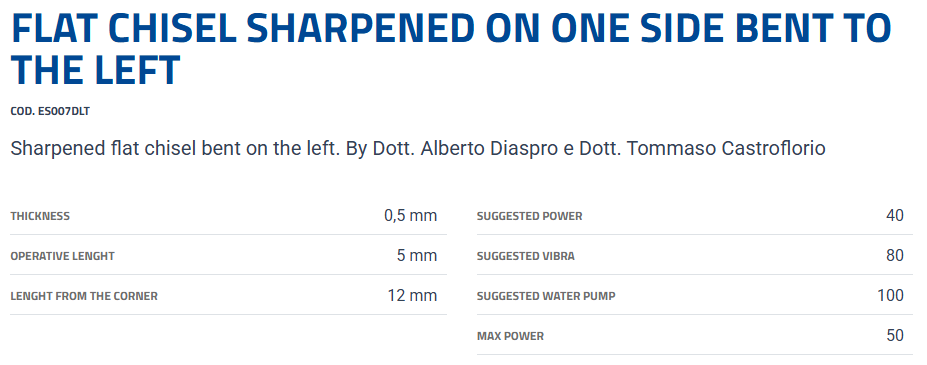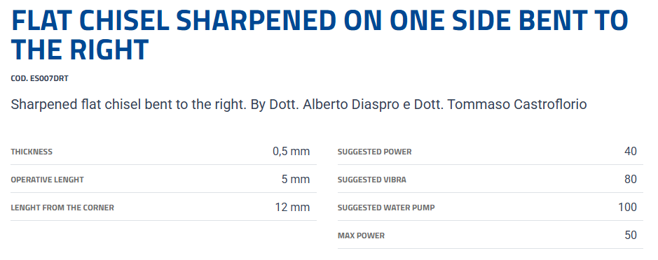 Οι άκρες Esa Incisa, που αναπτύχθηκαν από τους Dr. Alberto Diaspro και Dr. Tommaso Castroflorio, έχουν σχεδιαστεί ειδικά για την εκτέλεση ορθοδοντικών κορτικοτομών μέσω ελάχιστα παρεμβατικών προσεγγίσεων. Αυτά τα προηγμένα εργαλεία επιτρέπουν στοχευμένες επεμβάσεις σε συγκεκριμένους τομείς ή σε ολόκληρο τον οδοντικό φραγμό, με διαδικασίες που μπορούν να πραγματοποιηθούν στην κλινική υπό τοπική αναισθησία.