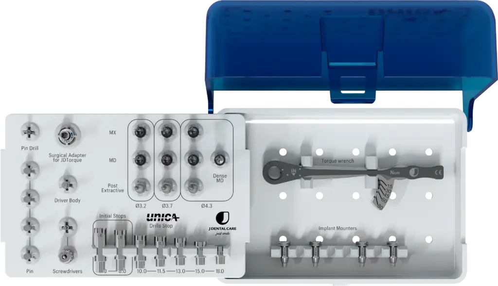 Unica: ένα τρυπάνι για κάθε διάμετρο εμφυτεύματος και για κάθε τύπο οστού (κάτω ή άνω γνάθος), σε συνδυασμό με ένα επαναστατικό σετ Drill Stops για την επίτευξη του επιθυμητού μήκους.